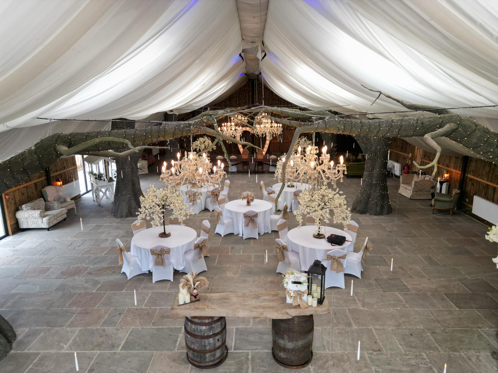 Last but not least, the site contains a huge fairy tale themed wedding barn. The barn can fit and accommodate up to 450 wedding guests, 75 of which would be able to take advantage of the aforementioned accommodation. This a fully licensed venue so allows for full services to take place, right from the ceremony to the first dance. If you are lucky enough to get a sunny day there is a lovely lawn just to the side of the barn where couples can be married. Similarly on the opposite side of the barn site a wonderful orangery further enhancing the choices for weddings at this venue.