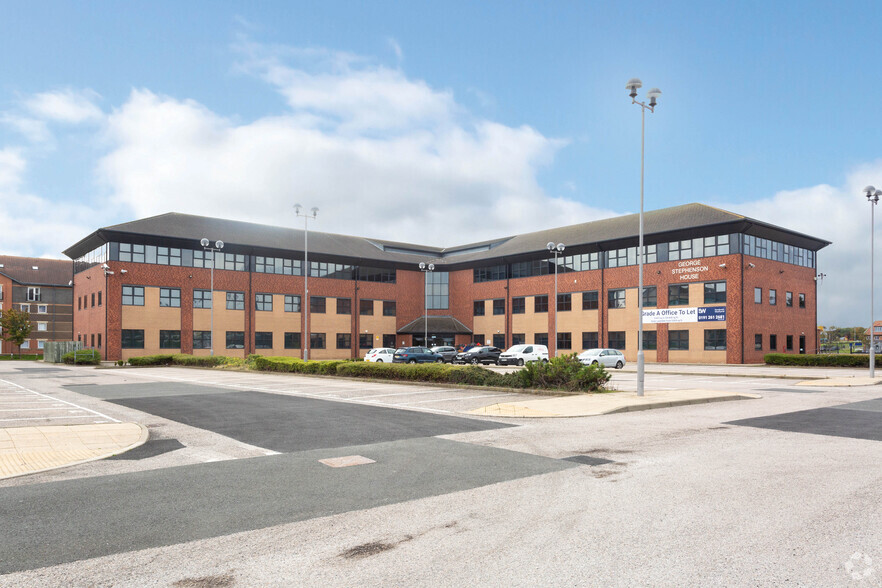 George Stephenson House is an attractive, modern three storey office building which is of steel frame construction with brick clad elevations beneath a pitched tiled roof. The building was built in 1999 and was finished to a high quality specification including: Raised access floors, full air conditioning, suspended ceilings with cat 2 lighting, 2 x 8 person network passenger lifts serving all floors, WC facilities on all floors and designated parking for 167 cars (1:236 sq ft)
